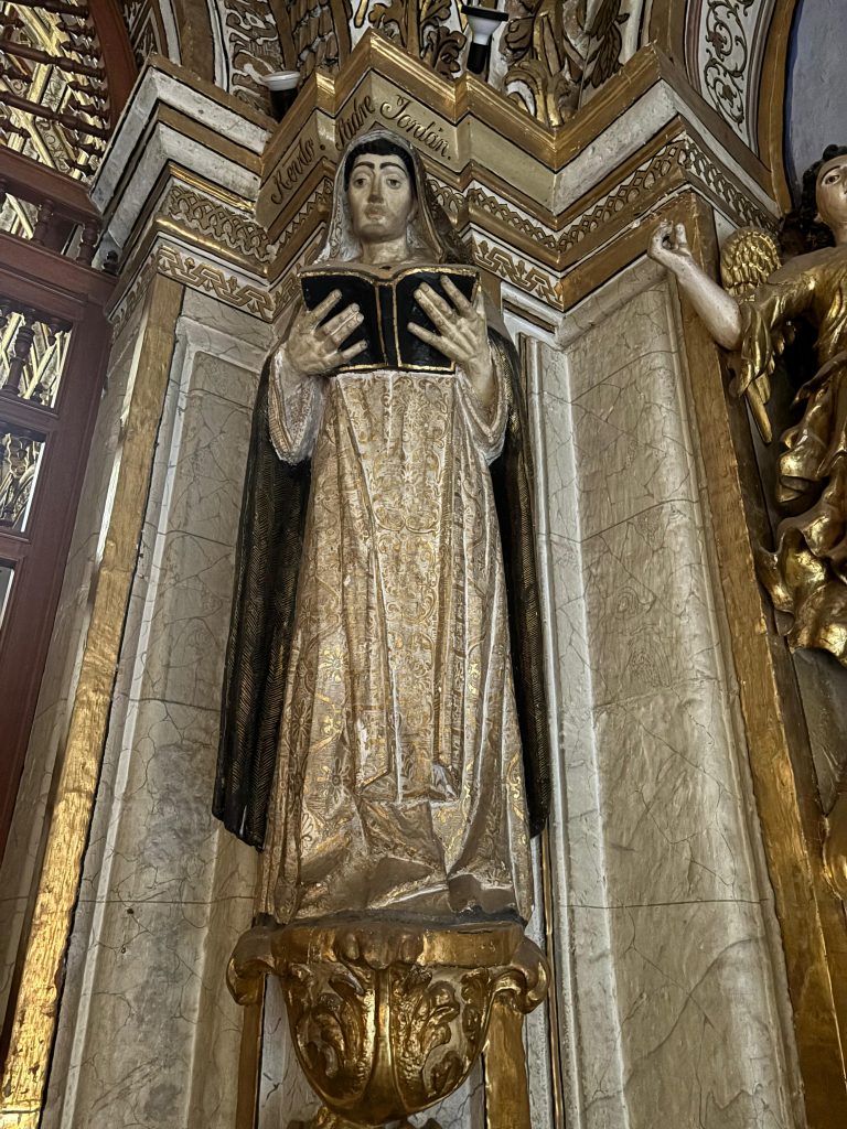 La imagen es pequeña, de escasos 30 cm de altura, tallada en madera, no es española, posiblemente de origen filipino, recordemos que ya para entonces se navegaba a través de la nao china de Acapulco a Filipinas.