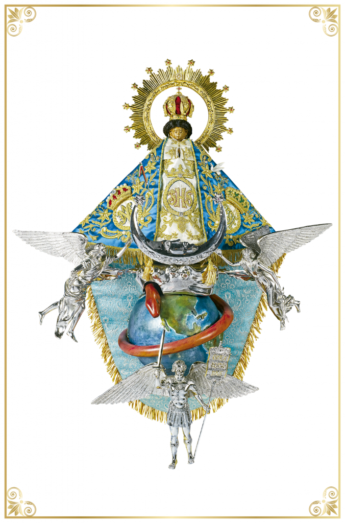 Con motivo de la coronación pontificia, la imagen resalta y luce ahora los signos propios de la Inmaculada Concepción. Entre ellos los colores azul y blanco. El mundo a sus pies, que parece ser dominado por la serpiente, signo del mal, es un signo frecuente de la Inmaculada. María parada sobre estos elementos representa la esperanza de que el mal puede y debe ser dominado, pues por ella nos viene el salvador del mundo.